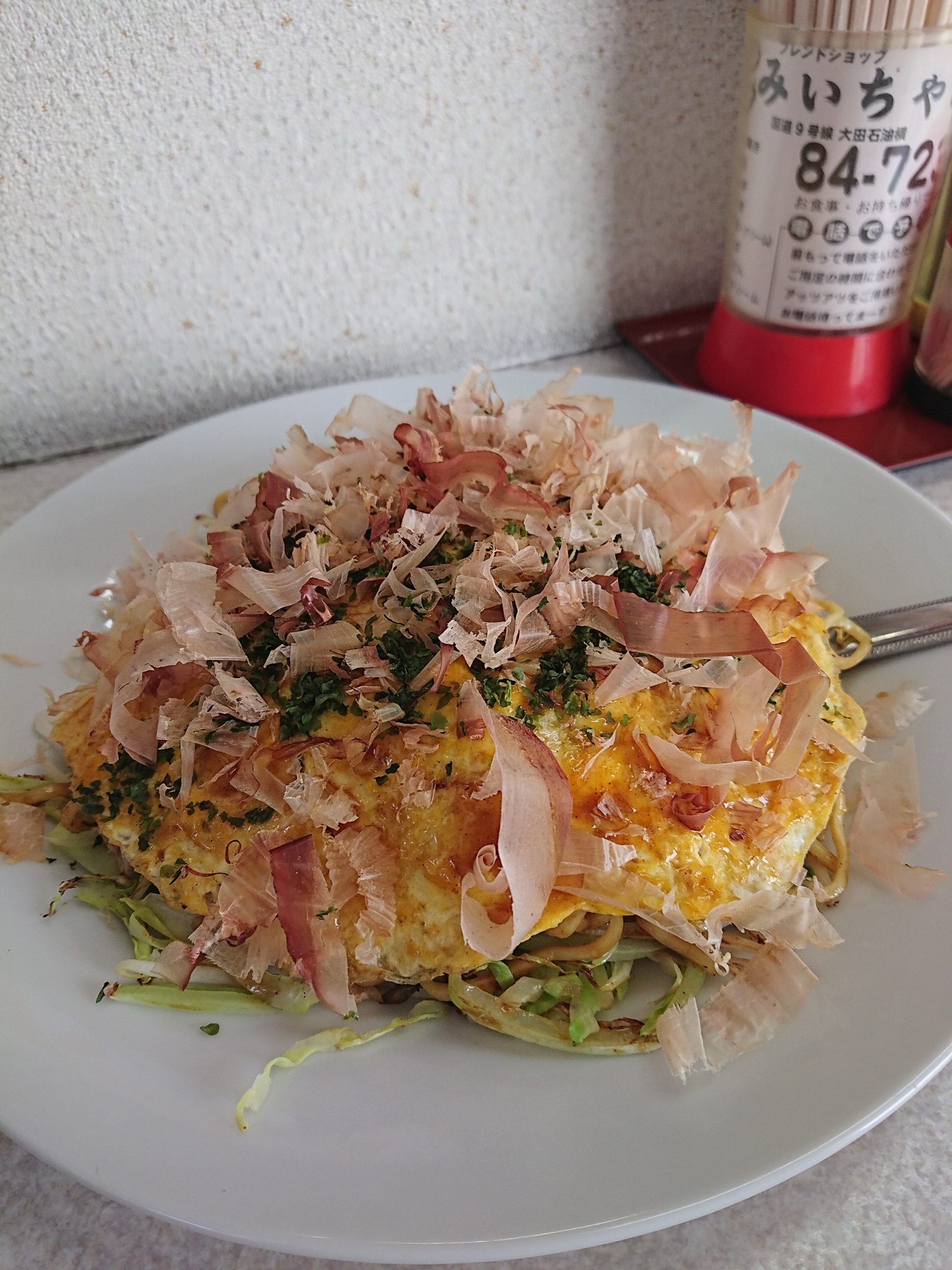 メニューは、お好み焼き、焼きそば、焼うどん、たこ焼き、大判焼き、ソフトクリーム、かき氷など。