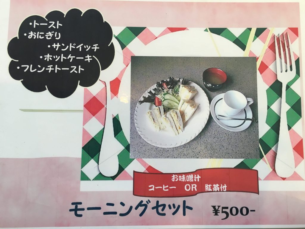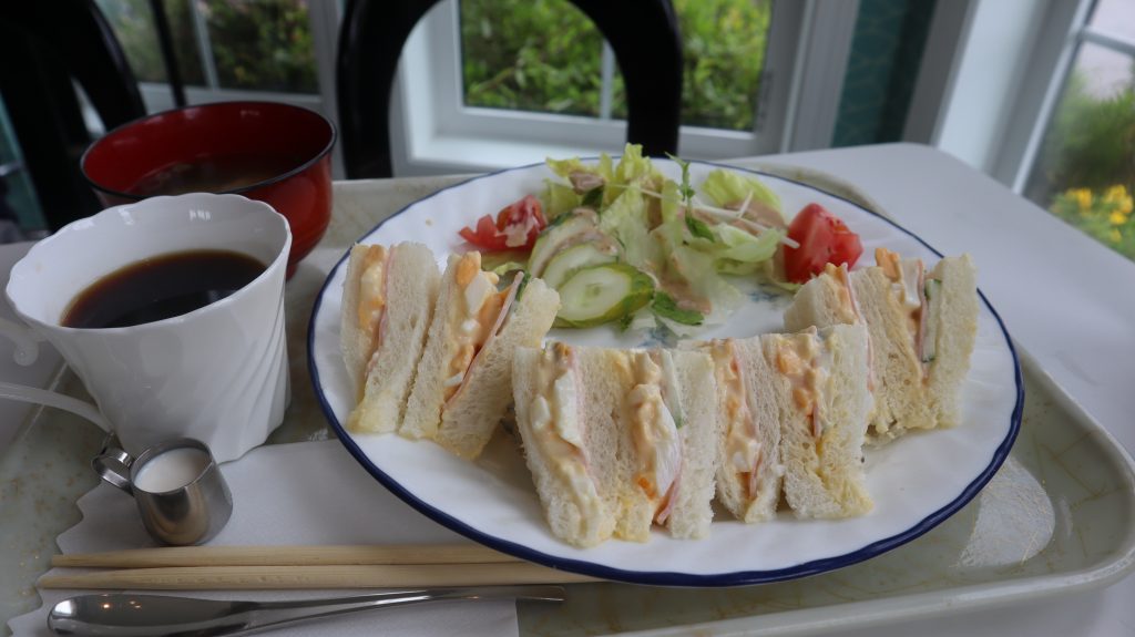 サンドイッチモーニングは、サンドイッチ、サラダ、ミソ汁、coffee or tea付きです。是非お召し上がりください。